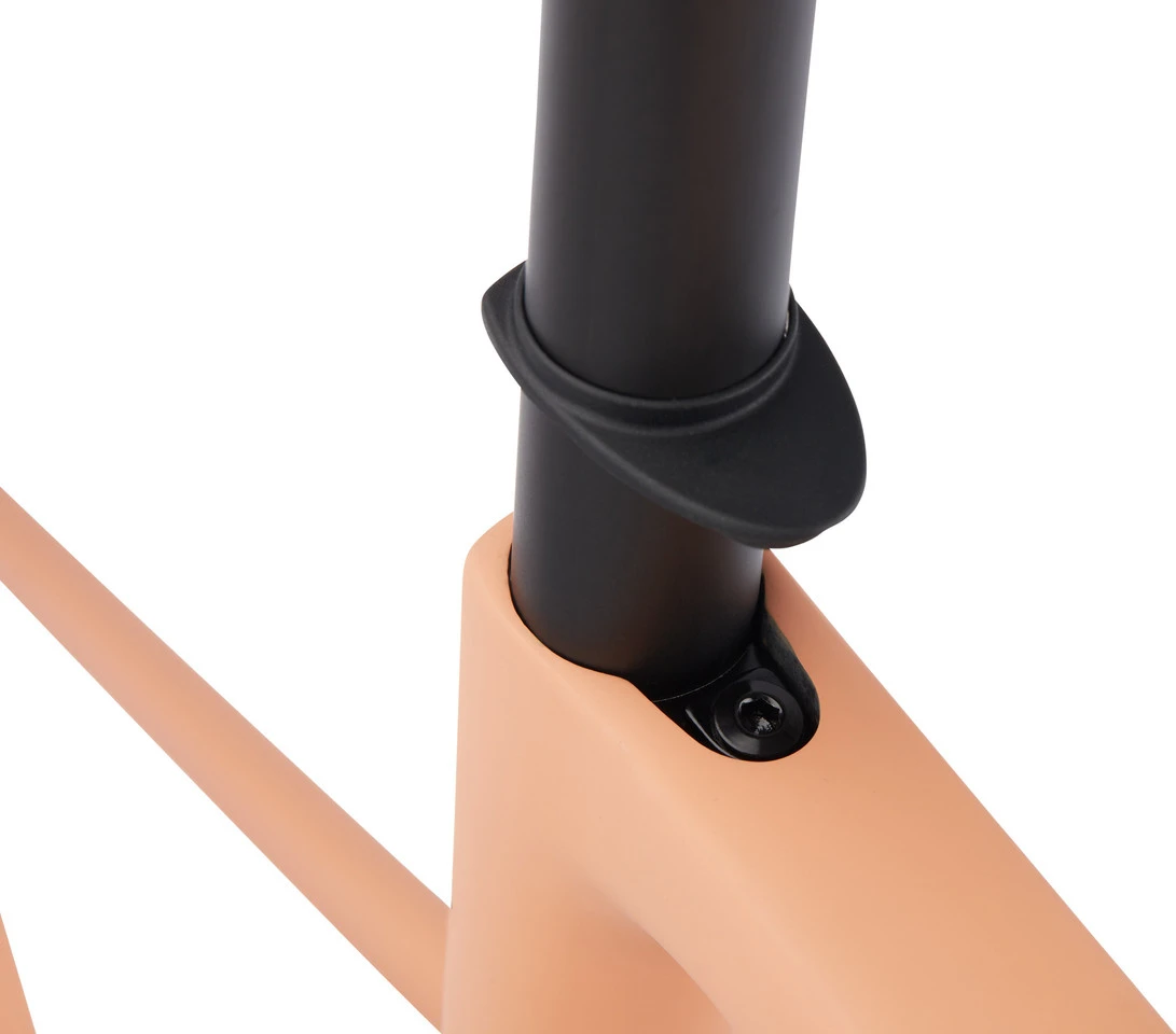 El kit de cuadro Exploro Ultra de 3T es ideal si quieres construir una bici Gravel resistente y robusta de carbono con cubiertas realmente anchas. ¡Aquí tienes la posibilidad de utilizar hasta 61 mm! Es el nexo de unión entre los cuadros de bicis de ruta rápidos y optimizados aerodinámicamente y los cuadros de MTB probados en los senderos. La horquilla de carbono Exploro Ultra y el tubo inferior, que se estrecha desde el eje de pedalier hasta el tubo de dirección, se han optimizado aerodinámicamente. El tubo de asiento también tiene un perfil diseñado aerodinámicamente. Sin embargo, la tija de sillín tiene un estándar redondo. Para conseguir un control aún mejor descendiendo por senderos, puedes montar fácilmente una tija de sillín telescópica.
