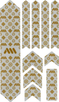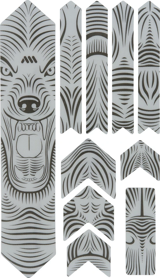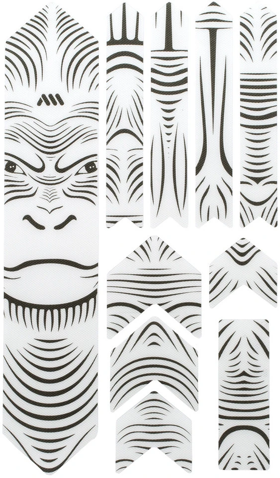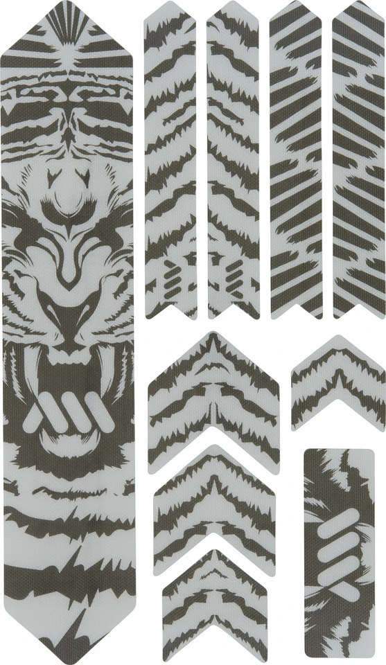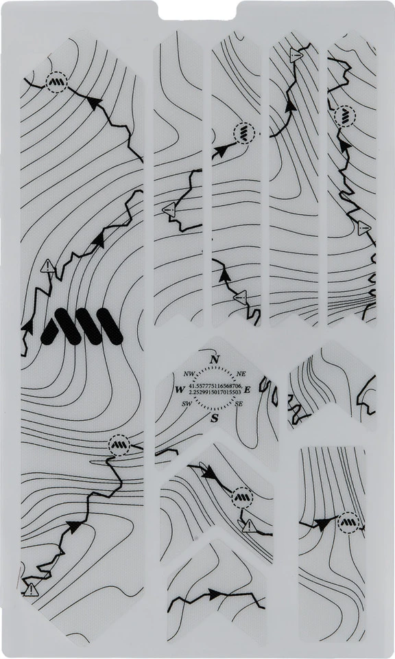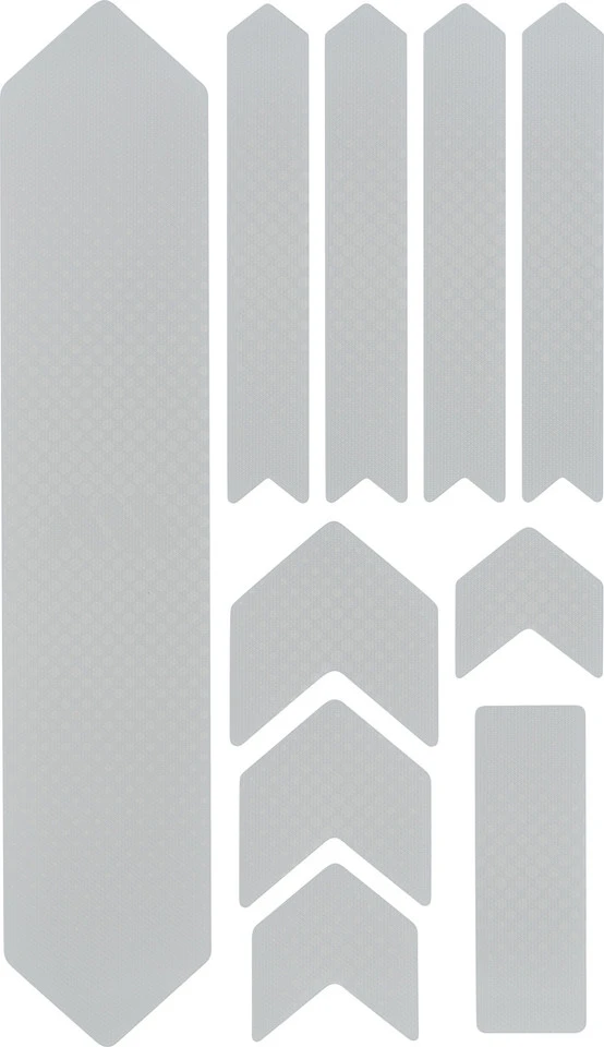 Las calcomanías de protección de cuadro están hechas de PVC altamente estable, autoadhesivo y semisólido. La estructura de panal les da además una superficie resistente a los impactos y a la abrasión. Las diversas piezas moldeadas también se pueden fijar a formas complejas del cuadro y ayudan a proteger tu querida bicicleta de posibles daños.