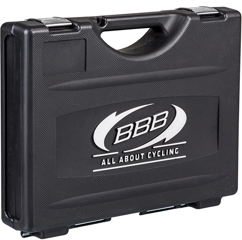 Funciones:Tronchacadenas BBB Nautilus II BTL-05Latiguillo extractor de piñones BBB TurnTable BTL-11Extractor de coronas BBB LockOut BTL-12SLlave de radios BBB Turner BTL-15Llave hexagonal Y BBB Three Star BTL-28Llave Torx Y BBB TorxStar BTL-28TLlave para tornillos de plato BBB BoldGrip BTL-32Medidor de desgaste de cadena BBB ChainChecker BTL-51Minitool BBB MiniFold S BTL-40S con 9 funcionesDesmontador de cubiertas BBB EasyLift BTL-81Volumen de envío:1 x Juego de herramientas BBB BaseKit BTL-92