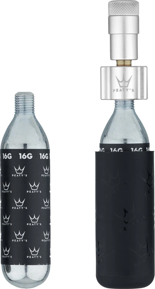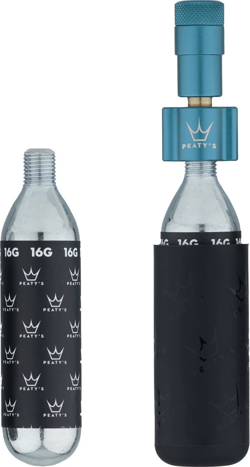 Volumen de envío:1 x Bomba de cartucho Peaty’s Holeshot CO2 Tyre Inflator2 x Cartucho CO2 Peaty’s Holeshot CO2 Cartridge 16 g1 x Funda de silicona Peaty’s