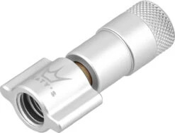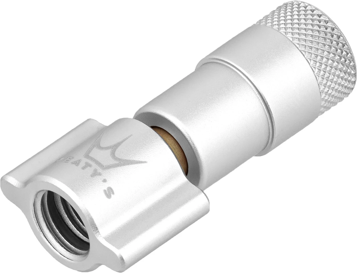 aluminio mecanizado por CNC en los colores de Chris Kingcabezal de bomba en diseño recto con conexión recta desde el cartucho a la válvula para un flujo de aire sin obstáculospara bombear, desenroscar el cartucho y presionar la bomba de cartucho en la válvulafunda protectora de silicona con base contra la congelaciónNúmero de fabricante:PPR-HTI-RAG