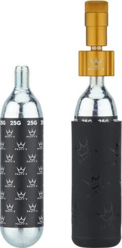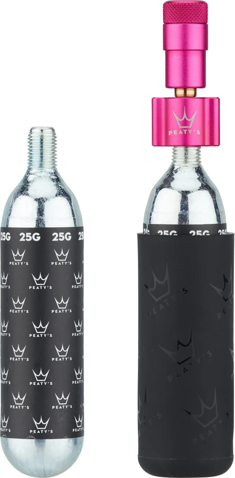 Volumen de envío:1 x Bomba de cartucho Peaty’s Holeshot CO2 Tyre Inflator2 x Cartucho CO2 Peaty’s Holeshot CO2 Cartridge 25 g1 x Funda de silicona Peaty’s