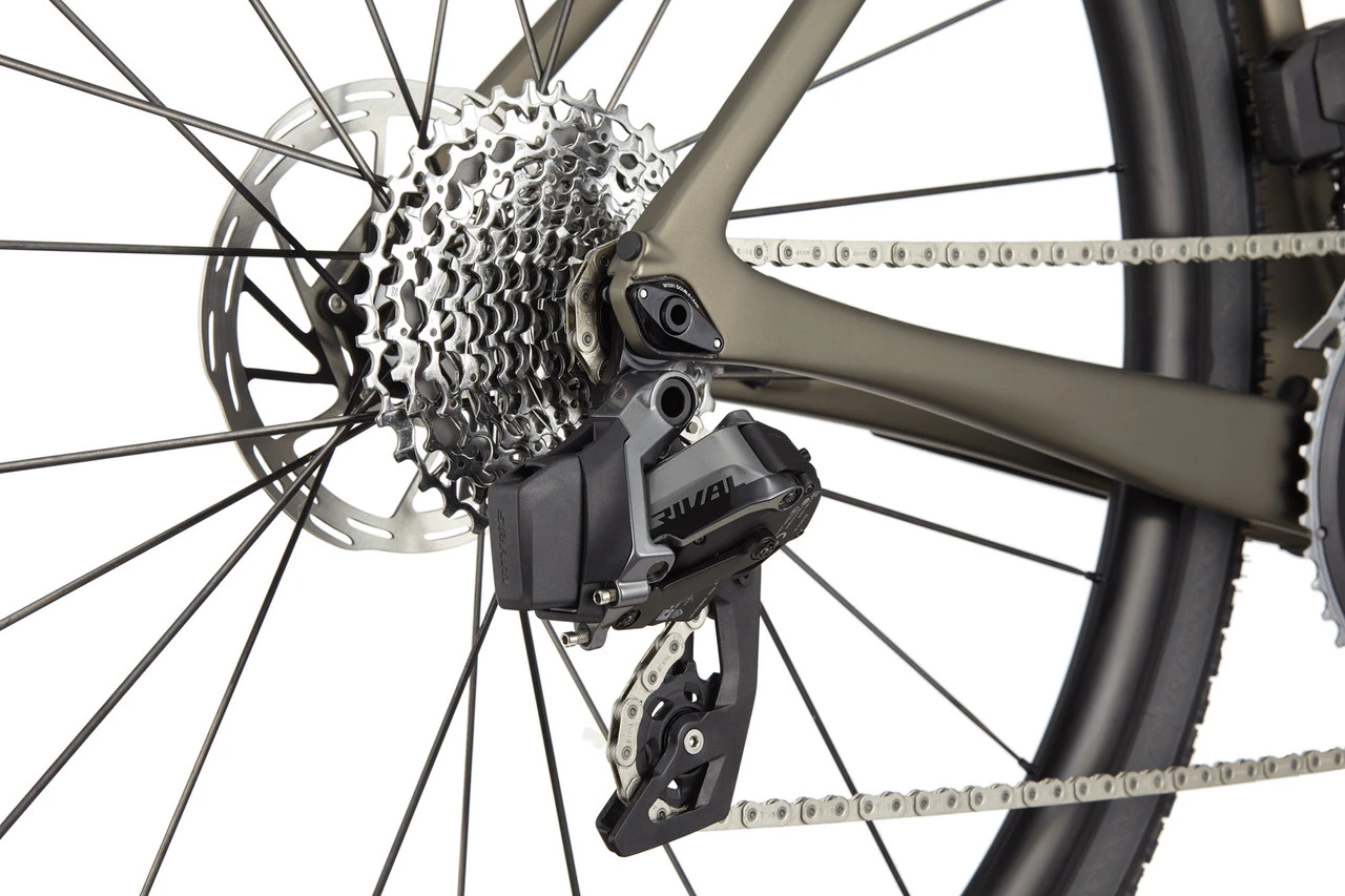 La bici Gravel SuperSix EVO SE de Cannondale, de carbono ligero, combina las excelentes características de competición de la SuperSix EVO con una geometría más orientada al terreno, una gran altura de cubiertas y un cuadro duradero. Las vainas inferiores cortas proporcionan una buena tracción y, gracias al Ai Offset, permiten el montaje de cubiertas anchas y de un desviador. El sistema de cambios electrónicos SRAM Rival AXS no requiere cables. La combinación de la tecnología SAVE, las vainas superiores de instalación baja y la tija de sillín de carbono HollowGram KNØT crea un alto nivel de confort en la conducción.