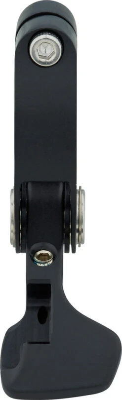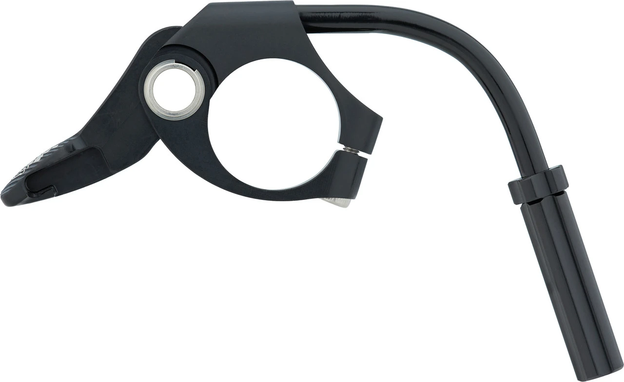 La palanca Fox Racing Shox Remote para el control remoto de tijas de sillín Transfer ha recibido una actualización ergonómica. Se monta a la izquierda, por encima del manillar, por lo que es adecuado para configuraciones con cambio de 2/3 velocidades o en el caso de que ya haya un mando para elementos de suspensión a la izquierda, por debajo del manillar.