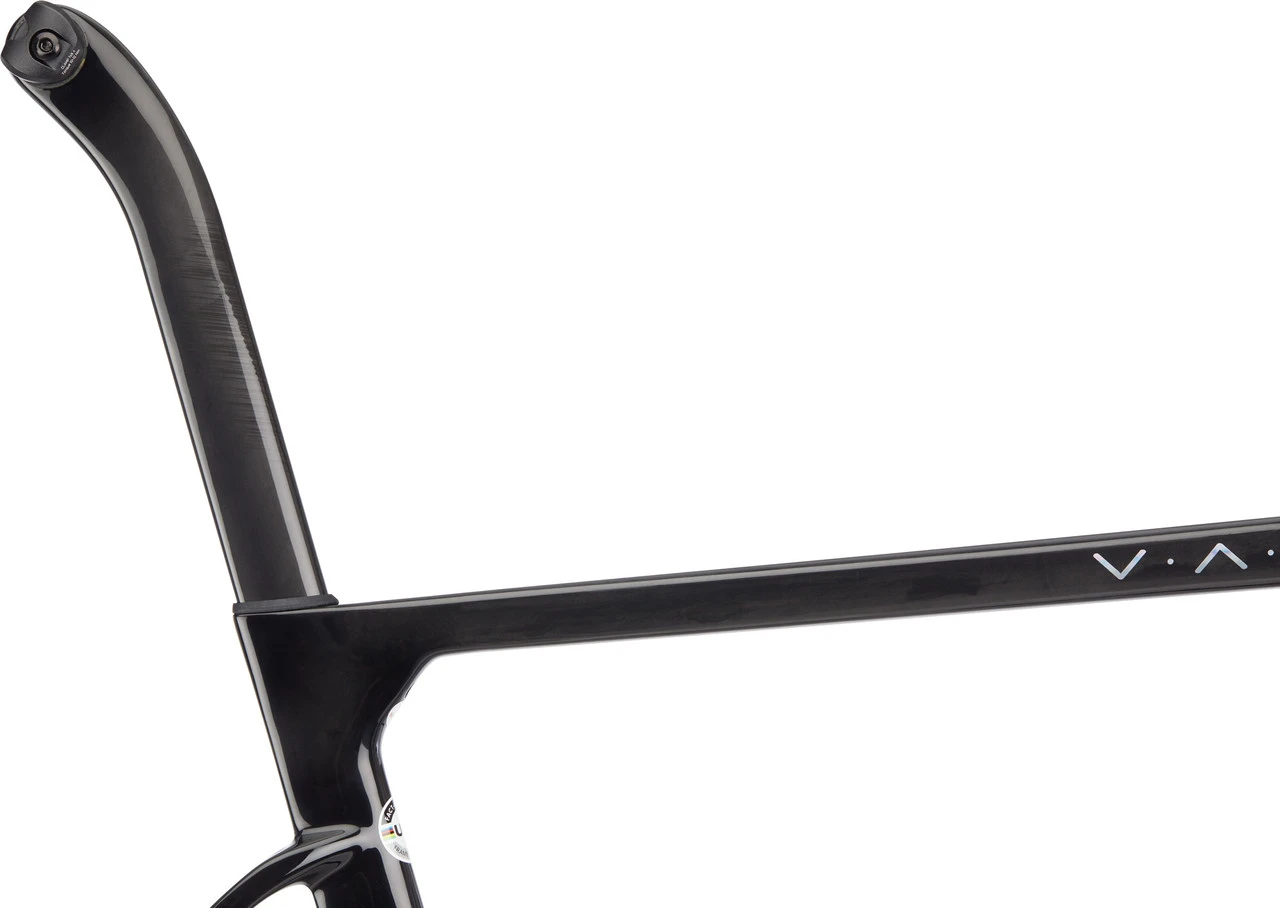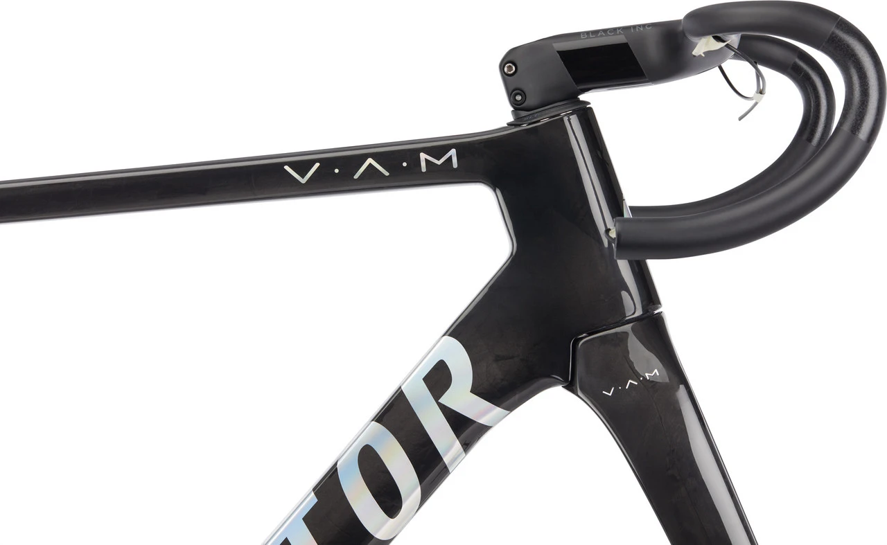 El OSTRO V.A.M. El kit de cuadro Factor te ofrece la posibilidad de construir una bicicleta de ruta de carbono aerodinámica súper ligera. La horquilla, el cuadro y la tija de sillín se han optimizado para un diseño más aerodinámico. El kit de cuadro ligero impresiona por su extraordinaria rigidez. Esto se logra mediante el uso de fibras de carbono TeXtreme. TeXtreme consta de fibras muy planas que pueden ser colocadas ampliamente, con la consecuencia de que se utiliza muy poco material. Estas fibras se apoyan en fibras de carbono basadas en brea. La holgura de cubiertas del cuadro es de 32 mm. La horquilla especialmente diseñada también es adecuada para cubiertas de hasta 32 mm de ancho. Así que puedes instalar cubiertas anchas con confianza, por ejemplo para conseguir más confort de conducción. Equipado con un juego de dirección High-End y un eje de pedalier de CeramicSpeed, tienes mínimas pérdidas por fricción mientras conduces. Gracias a la unidad de la potencia del manillar aerodinámica de Black Inc, el kit del cuadro hace honor a su nombre – OSTRO es uno de los principales vientos del Mediterráneo. También se incluye cinta de manillar y un soporte para tu ciclocomputador.