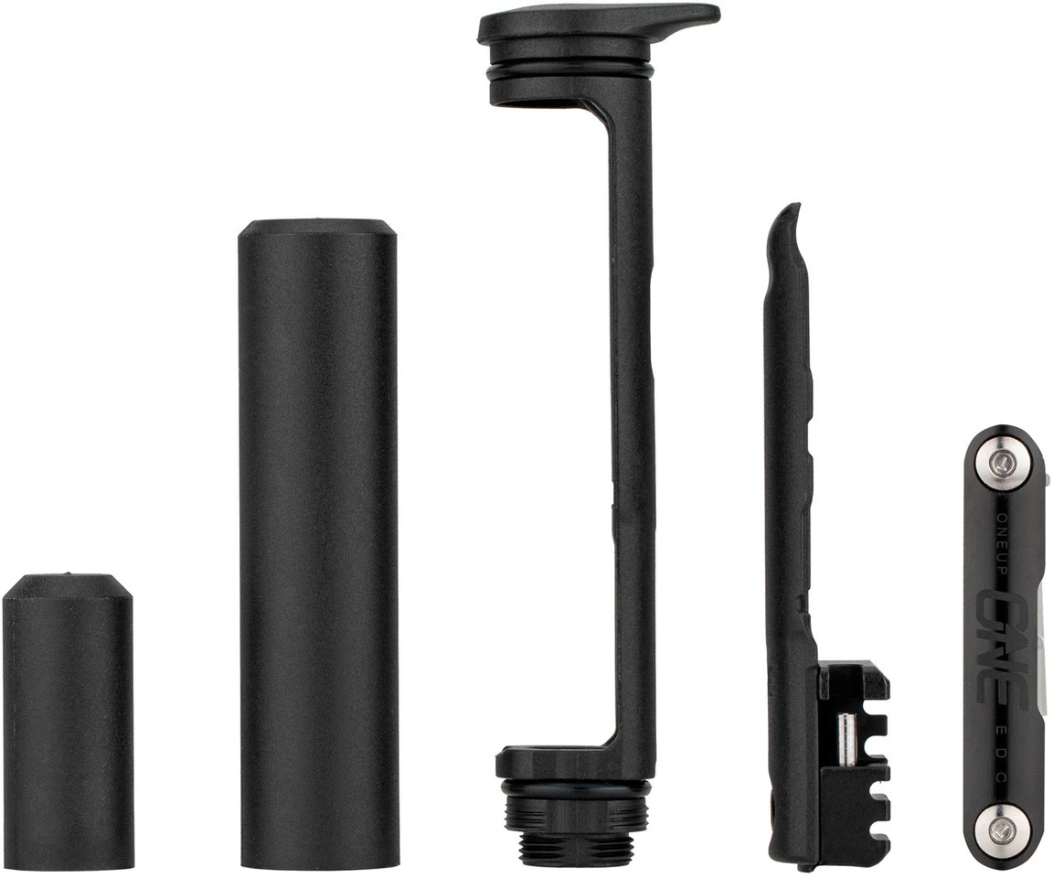 Kit de montaje EDC TapCaracter铆sticas:incluye todas las herramientas 煤tiles para el camino.varias opciones de almacenamiento y de transportecon una c谩psula peque帽a sellada para el Tubeless Plug Kit (parche para cubiertas sin c谩mara y herramienta de inserci贸n, no incluida en el volumen de env铆o)con una c谩psula grande sellada para espacio de almacenamiento adicionalSistema seguro y sin traqueteoinnovador dise帽o hexagonalm谩s f谩cil de retirar que el modelo anterior, dise帽o de baja fricci贸ntronchacadenas redise帽ado, f谩cil de usar con cuerpo de acero para una mayor durabilidadllaves de radios m谩s fuertesMultitool y tronchacadenas negros (ya no son verdes)sin partes sueltas, ultra compacto, muy ligeropuede combinarse con todas las opciones de accesorios de V1 EDC ToolInformaci贸n sobre el color:black-black:con Top Cap negraNegro-verde:con Top Cap verdeN煤meros de fabricante:black-black:1C0691BLK + 1C0414BLKNegro-verde:1C0691BLK + 1C0414GRNVolumen de env铆o:El set de herramientos OneUp Components EDC Tool V2 + EDC Top Cap, consta de: