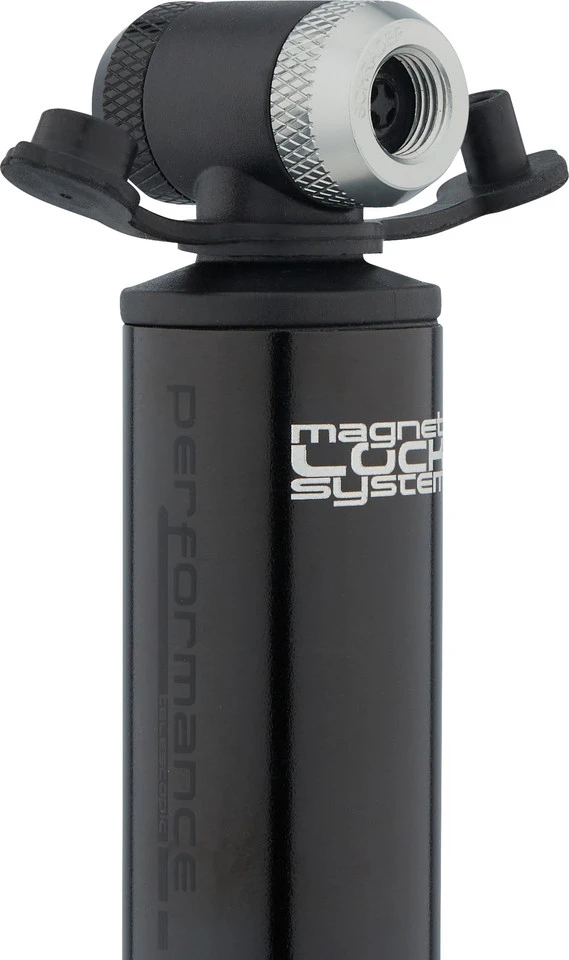 El cabezal de la mini bomba PRO Performance XS se enrosca directamente en la válvula de la cubierta y bombea hasta 8 bares de aire en su interior. Cuando no se está utilizando la bomba, el inteligente sistema de bloqueo magnético mantiene la bomba plegada con un tamaño de sólo 16 cm de longitud.