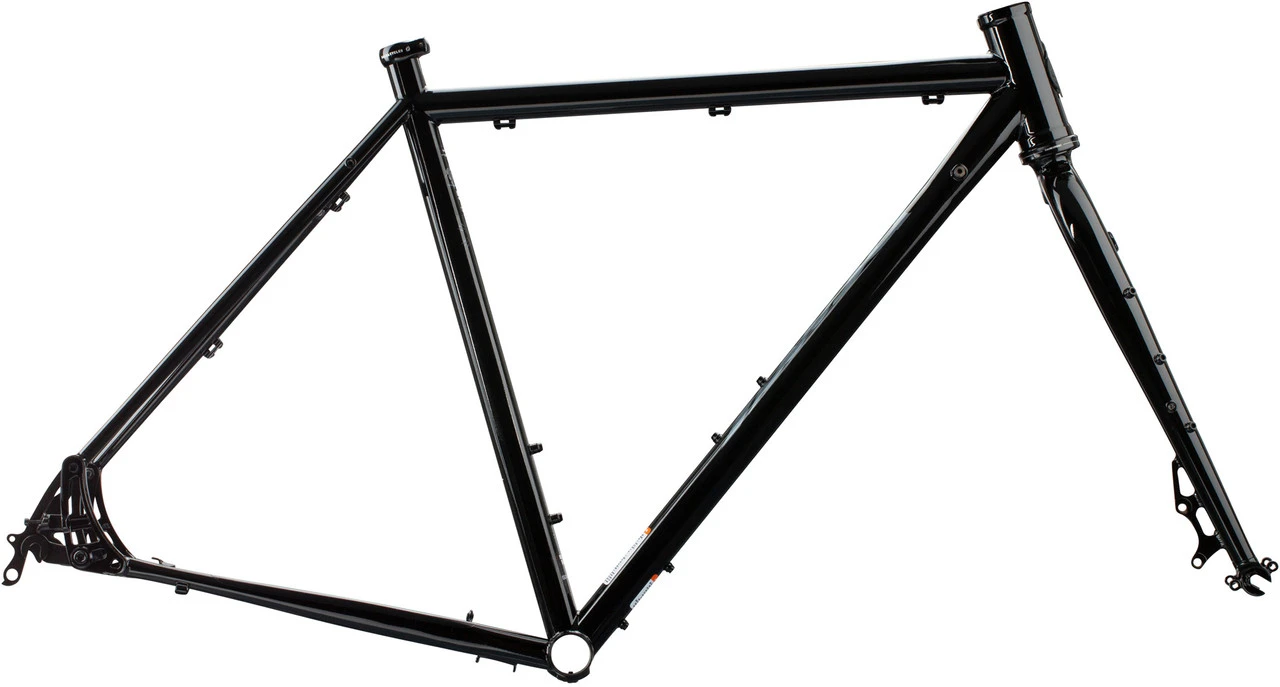 Especificaciones:Campo de aplicación:Touring/TrekkingTamaño de la rueda:28″ , 29″Tallas de cuadros:50 cm, 52 cm, 54 cm, 55 cm, 57 cm, 59,5 cmMaterial Cuadro:Acero (CrMo)Material Horquilla:Acero (CrMo)Datos técnicos:Ancho de montaje rueda trasera:135 mmEje estándar:10 mm Cierre rápidoTija de sillín (Ø):27,2 mmAbrazadera de sillín (Ø):30 mmJuego de dirección:EC44 – EC44 (de arriba hacia abajo)Tubo de dirección recomendado:1 1/8″Longitud de montaje de horquilla recomendado:415 mmRecorrido de horquilla recomendado:no está concebido para horquillas de suspensiónEstándar de pedalier:BSAAncho de caja de pedalier:68 mmFijación de frenos:Disc ISFijación del desviador:High Clamp (abrazadera 31,8 mm)Fijación de portabidones:3Fijación de accesorios:Portaequipajes Alternator 135 Low Deck o Alternator 135 Plus(otros portaequipajes no son compatibles), guardabarros, zócalo de cambios de tubo inferior, radio de repuesto, soporte de aparcamientoDatos técnicos de horquilla:Tubo de horquilla:1 1/8″Sistema de ejes:Cierre rápido de eje pasante (9 x 100 mm)Fijación de frenos:Disc ISOffset:55 mmAltura de montaje:415 mmAncho de montaje:100 mmDiámetro de la corona de la horquilla:30 mmMaterial del tubo de la horquilla:AceroMaterial brazos de horquilla:AceroMaterial Soportes eje rueda:de acero inoxidableFijación de accesorios:Low Rider o Anything Cage, guardabarros, portabidonesAprobaciones:Límite de peso:161 kg Peso completoTamaño máximo de disco de freno:180 mmTamaño máximo de cubierta:40-622 (700x40C) con guardabarros, 50,8-622 (700×50,8C) sin guardabarros, 29 x 2,0″ sin guardabarrosNúmero de platos:3 velocidades, 1 velocidades, 2 velocidadesTamaño máximo del plato:26-38-48 DCaracterísticas:tubos de cuadro Cobra Kai CroMoly (4130), interior y exterior conificado, fuerte y ligerohorquilla Marrakesh CroMolygeometría de gira con un eje de pedalier bajo y longitud de vaina inferior ajustable, con dropbar específicacompatible con cambios de cuadro, Trigger, manetas de cambios/frenos o cambios de extremos de manillarfijación de freno 51 mm IS delantera y traseraposibilidad de fijar directamente hasta 5 bidonesnumerosas opciones Cargo, desde el portaequipajes hasta bolsas de cuadrocompatible con Rohloffcategoría ASTM 2Geometría:50 cm: