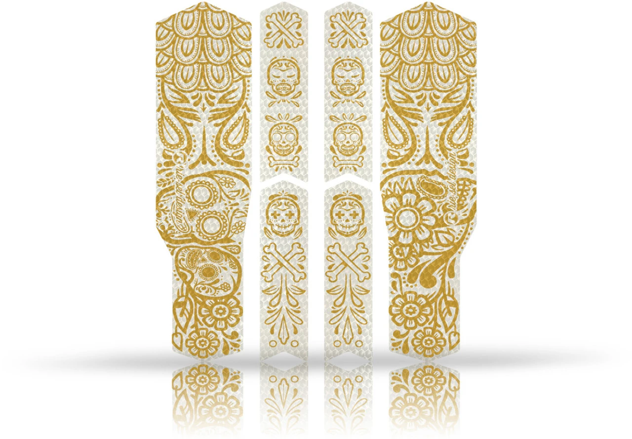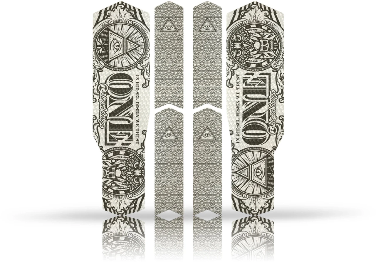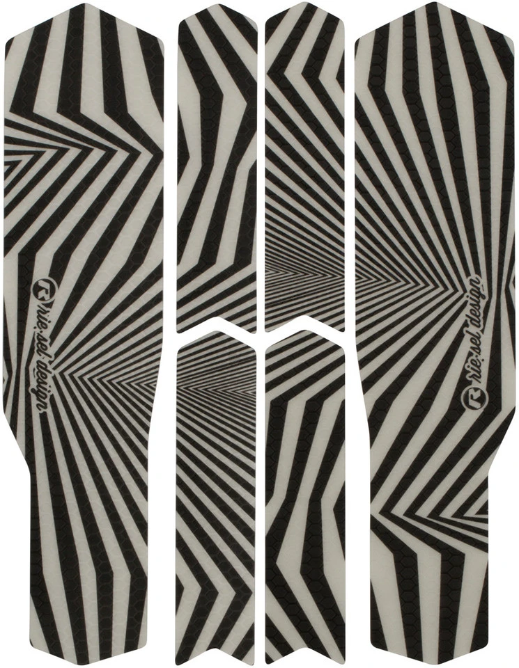 Con el set de protectores de vainas Chain:TAPE 3000 de rie:sel, las preocupaciones por la abrasión de la pintura por golpes de cadena u otros efectos mecánicos son cosa del pasado. Las dos shapes grandes y las cuatro angostas están hechas para la parte trasera completa. Las formas simétricas de las shapes no sólo proporcionan una protección óptima, sino además elegancia en ambos lados. Incluso puedes pegarlas en bordes complicados sin problemas porque son autoadhesivas. La chain:TAPE 3000 es extremadamente robusta y dura eternamente – tal vez incluso más. Incluso el diseño semitransparente mantiene su intensidad de color sin desteñirse. ¡Tu horquilla trasera queda protegida de forma elegante y puedes salir despreocupado a toda velocidad!