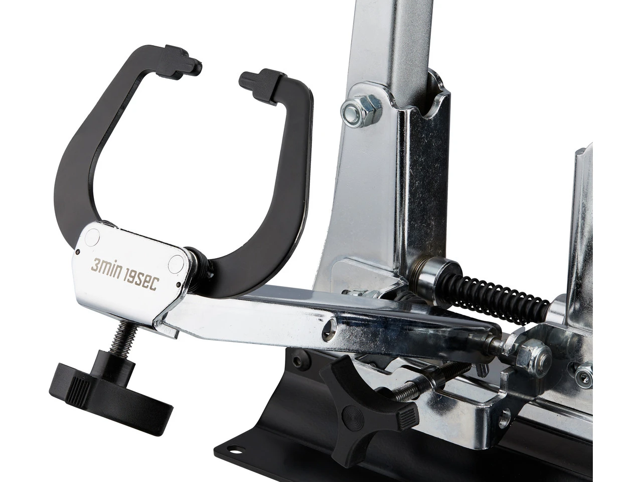 El soporte de alineaci贸n de 3min19sec se destaca por su amplia compatibilidad, estabilidad y facilidad de uso. Se puede ajustar de forma continua hasta un ancho de montaje de 180 mm y es compatible con todos los tama帽os de llantas habituales. Se incluye un adaptador de ejes pasantes de 12 mm, 15 mm y 20 mm. El soporte de acabado macizo puede atornillarse al banco de trabajo para obtener un apoyo seguro o colocarse sobre su base. Ya que los brazos y el sensor de medici贸n se ajustan siempre de forma sincronizada, la rueda se posiciona autom谩ticamente en el centro. Los sensores est谩n cargados con resortes de tal manera que no se produzca un bloqueo de ruedas.