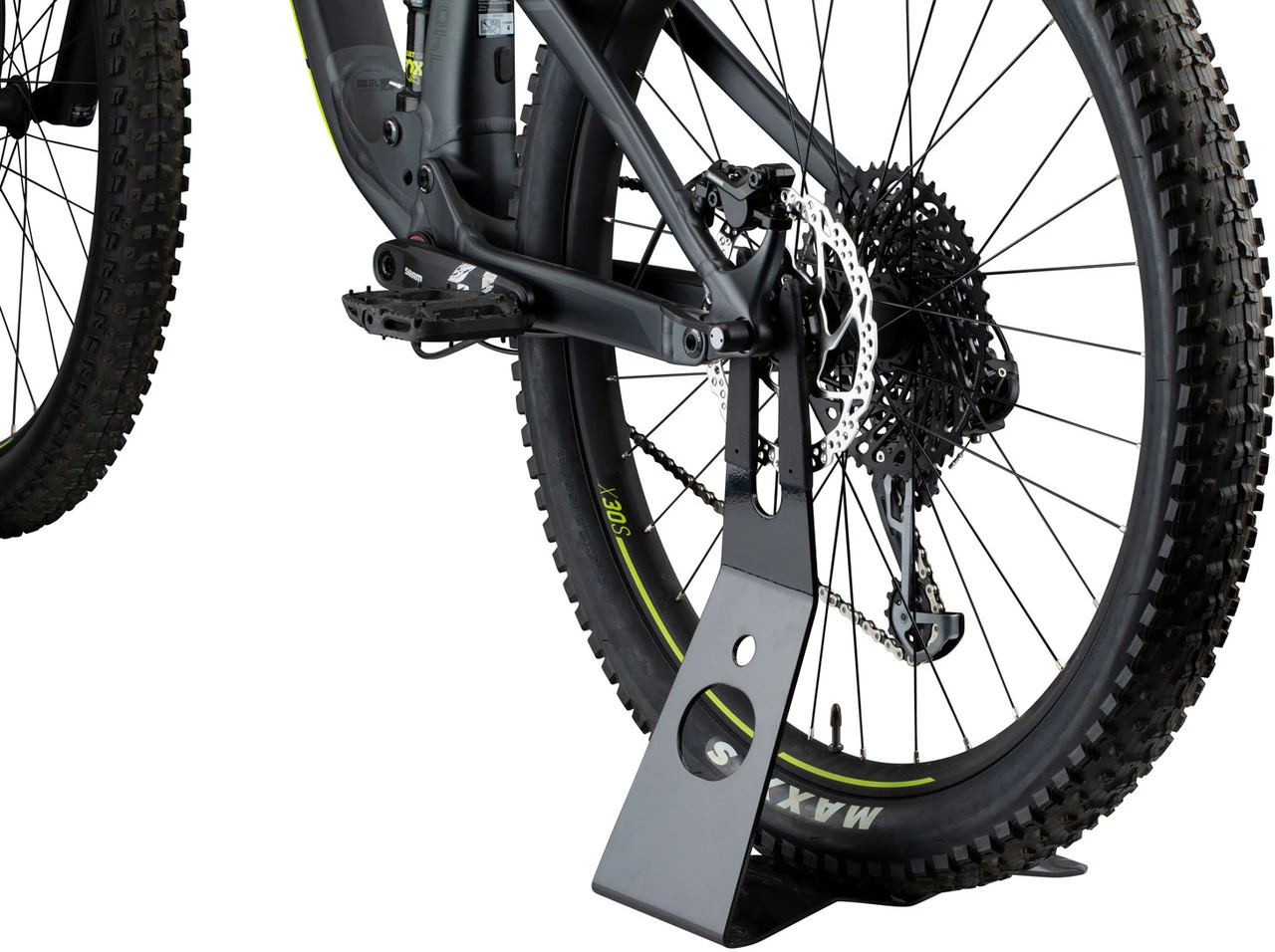 Datos técnicos:Diámetros de ruedas compatibles:29″ , 27,5″ y 28″Compatibilidad:La distancia entre la fijación del disco de freno (anillo de bloqueo o pernos) y el interior de la puntera debe ser de al menos 9 mmLa distancia horizontal a la pinza de frenos u otras partes que apunten hacia la rueda debe ser superior a 29 mmEl diámetro exterior del buje en la zona puede ser de 25 mm como máximoCaracterísticas:construcción estable y robustaVolumen de envío:1 x Caballete trasero 3min19sec