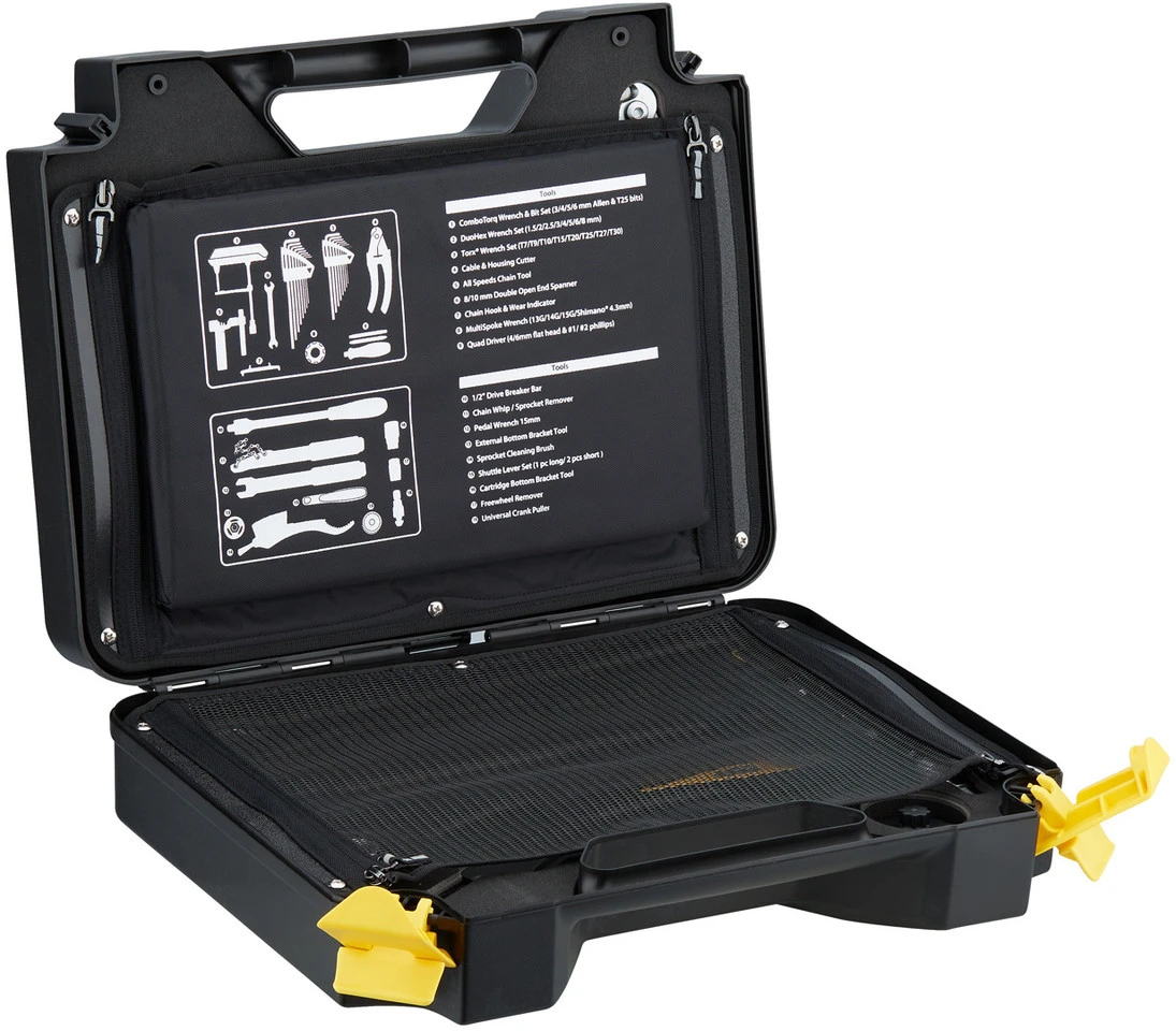 La PrepBox de Topeak es una caja de herramientas robusta llena de todas las herramientas profesionales que se necesitan para una bicicleta. 36 piezas con 55 funciones mantienen y reparan todo, desde radios hasta cadenas.